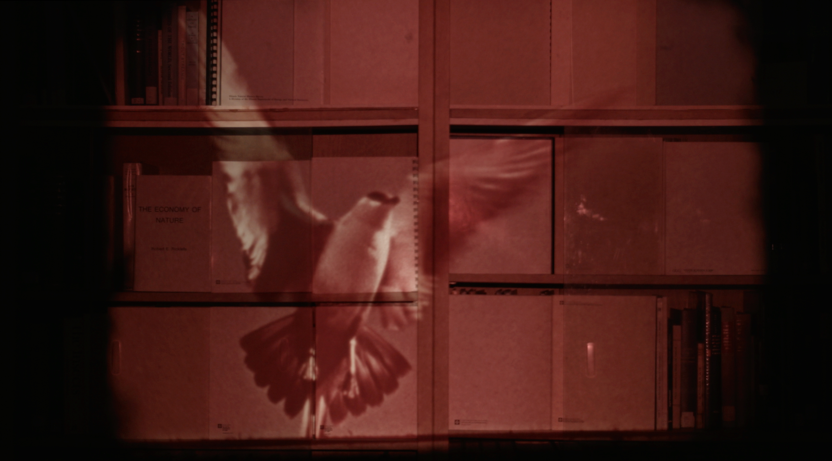 The title Capture-Recapture refers to a method frequently used in ecology, which consists of systematically capturing, marking, releasing and then recapturing part of an animal population to estimate its size or monitor the progress of a disease. In the video, the library of the Université de Montréal’s Biology Station form a screen for the 16mm documentary High Arctic: Life on the Land, produced in 1959 by the Scientific Division of the National Film Board of Canada (NFB). A composite space opens up, where the territory and northern animals are simultaneously captured by the NFB’s cameras and the library’s State reports. This recapture sheds light on the monitoring of the land where media promotion and scientific maneuvers are deployed side by side.